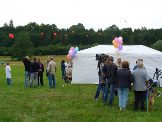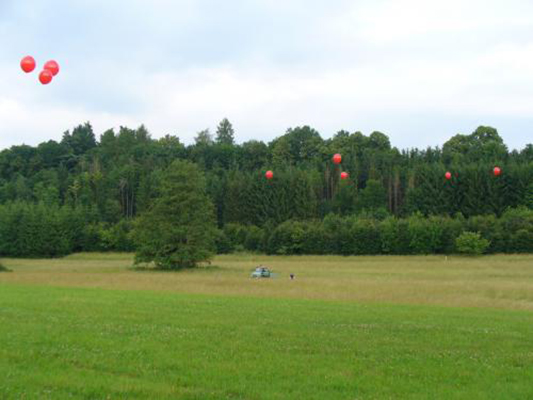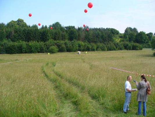 Das Brückenbauwerk wurde in dieser Aktion mit grossen roten, heliumgefüll-ten Ballons über dem Tal markiert. Zusätzlich wurde mit Lautsprechern Verkehrslärm in der vom Gutachten vorhergesagten Lautstärke erzeugt. Wie die NNP in einem ausführlichen Beitrag feststellte (siehe Pressespiegel am Fuss dieser Seite), wurde, sobald der künstliche Lärm abgespielt wurde, „jedes Ge-spräch erstickt, kein Wort war mehr zu verstehen, kein Vogel zu hören".